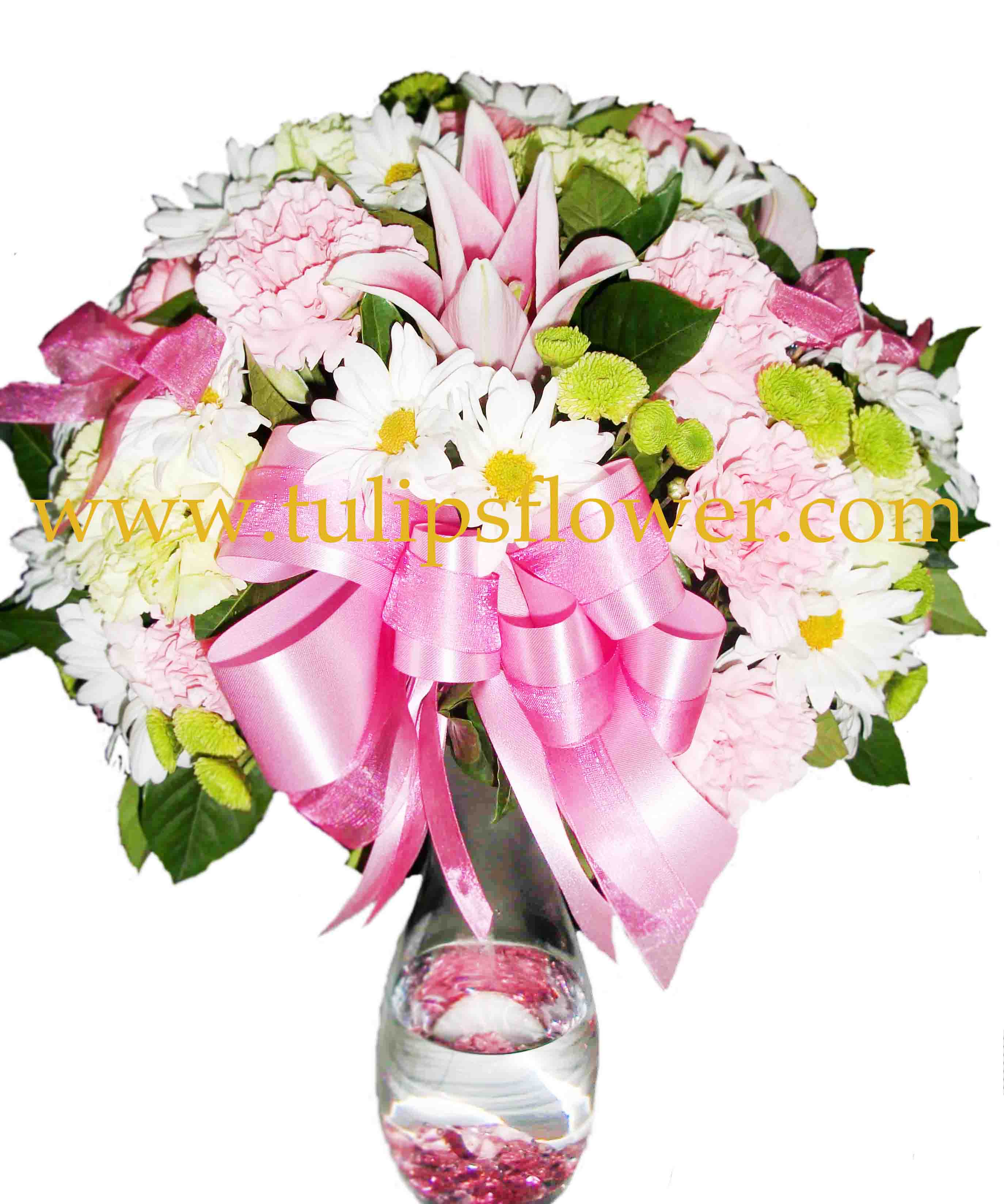แจกันดอกไม้โทนสีโอรสชมพูขาว